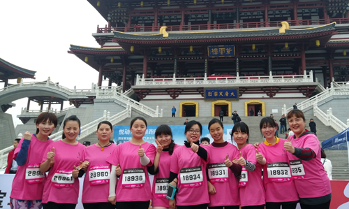 紫云楼下赛前合影,唐王女子乐跑团,彰显大唐风韵!