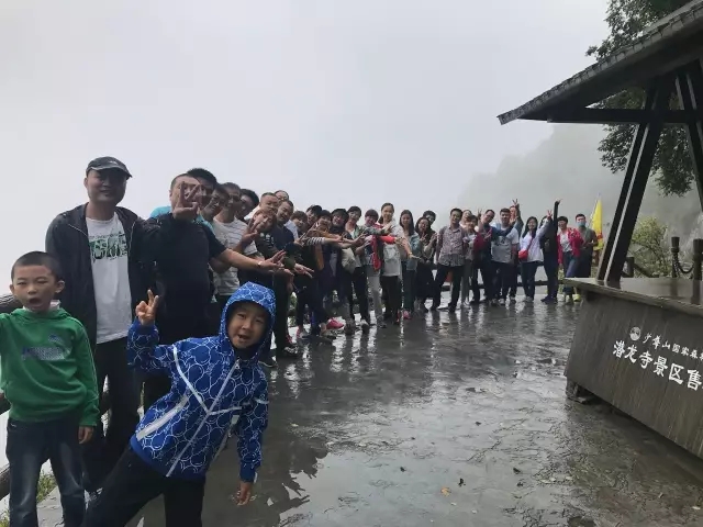 烟雨朦胧,在雨中感受秋天的诗情画意,难得,实属难得,当是天公不作美,却造就另一番不可多得的仙境。云山雾罩中,笑脸盈盈,一群有梦想,有胆识,有追求,爱生活的唐王骚年!