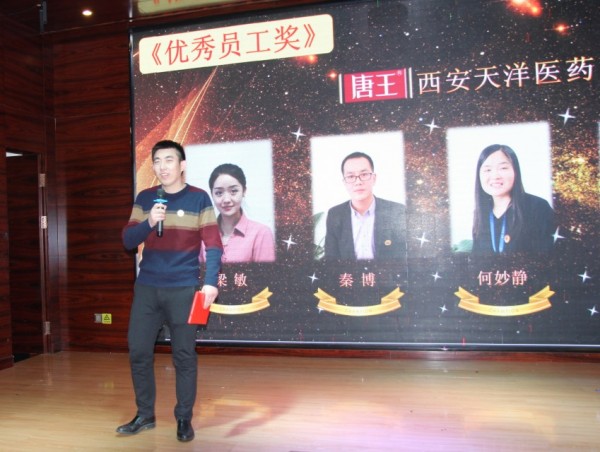 【3】西安天洋医药荣获优秀销售精英奖和优秀员工奖的成员合影留念,并由优秀员工代表(张学智)发表获奖感言!