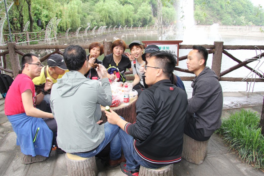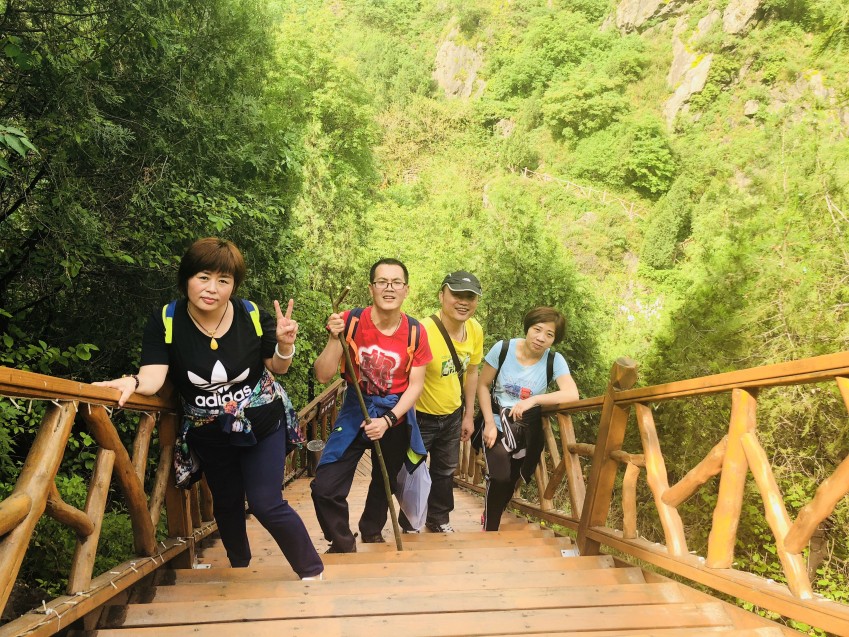 这峡谷的山水,既融合了秦岭的秀美,又不失巍峨。雨后的空气清新自然,大家在“天然氧吧”里自由穿行,每到一处观景台,就聚集到一起,聊天,歇脚,拍照。快门留下不经意间的美好笑容和欢乐,然后继续前行。