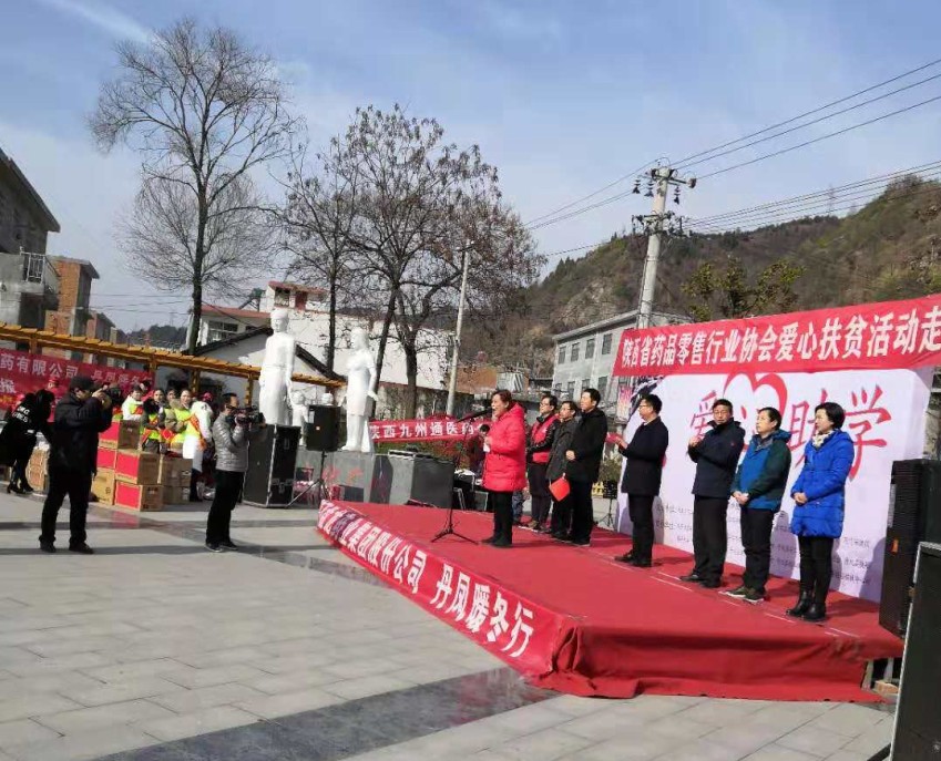 12月11日,陕西省药品零售行业协会携手多家爱心协会、企业走进丹凤,开展“践行十九大健康助脱贫·爱心扶贫暖冬行动”捐赠活动,在这个寒冷的冬季里,丹凤人民感受到了来自社会爱心人士暖暖的关爱,他们为丹凤的学生及贫困群众送上了助学金及慰问品。此次活动还受到了当地县委县政府的大力支持,县委常委、组织部长王建刚出席了本次活动。